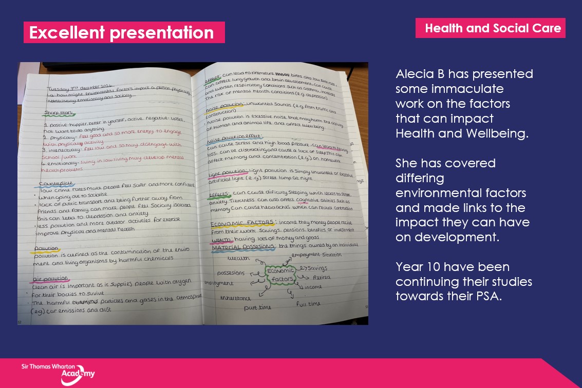 Our Health and Social Care curriculum is built on the understanding that students will be inspired to work in a diverse and changeable sector that significantly impacts the health and well-being of service users and society. We will foster students’ ambition to promote excellence in standards of care, exploring and experiencing roles within the health and social care sector and examining the skills, attributes and qualities needed to succeed in such a profession and allow all students to be accountable for their own progress and success.