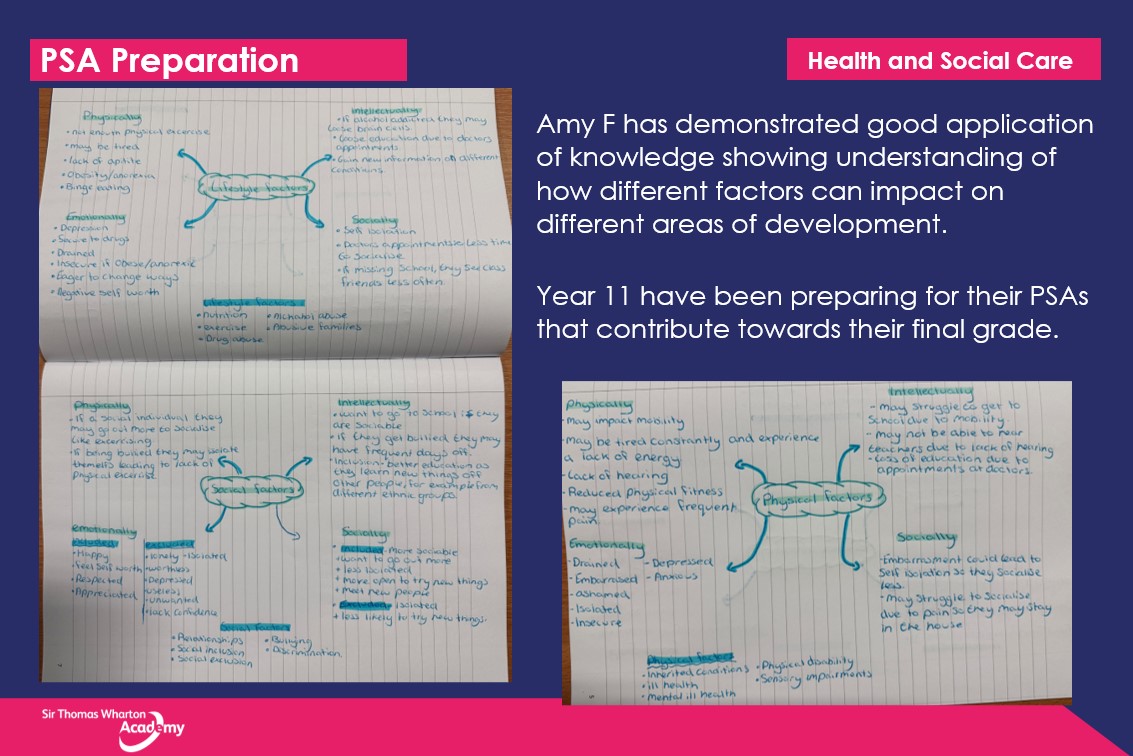 We believe that when students embark on their Health and Social Care studies, their prior knowledge will be informed by core disciplines such as Science, English, Physical Education and PSHE. Across both key stages, our curriculum allows for the application of subject specific knowledge, skills and concepts to different Health and Social Care contexts allowing all students to gain a sense of real-world relevance. This is enhanced by ensuring that students understand the latest industry requirements and relevant legislation; they will be given the opportunity to explore the impact of these on an ever-changing sector.