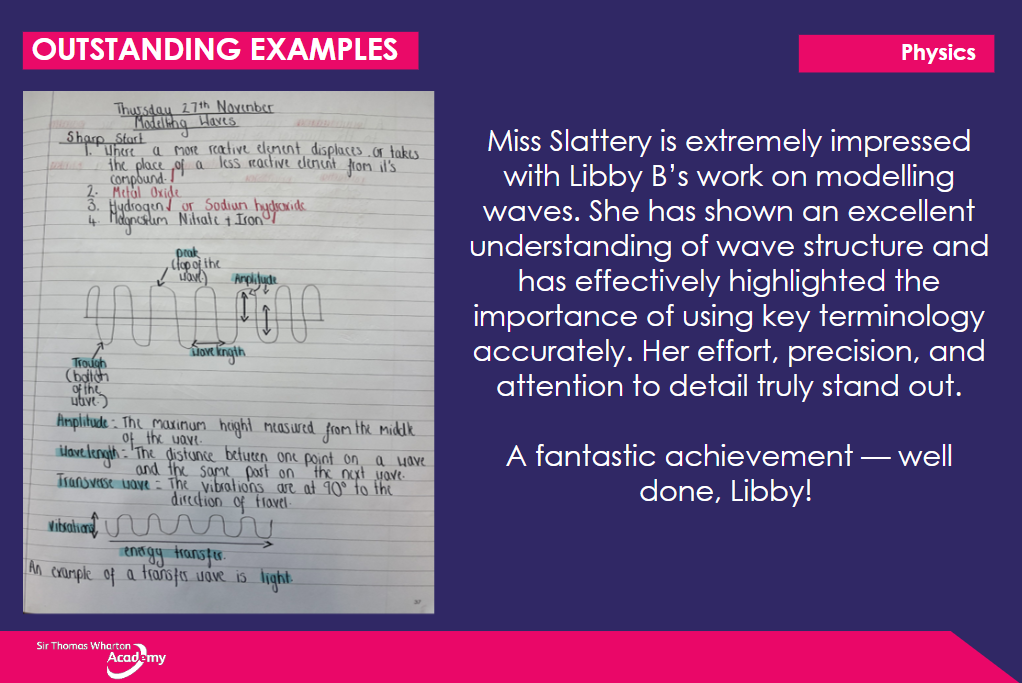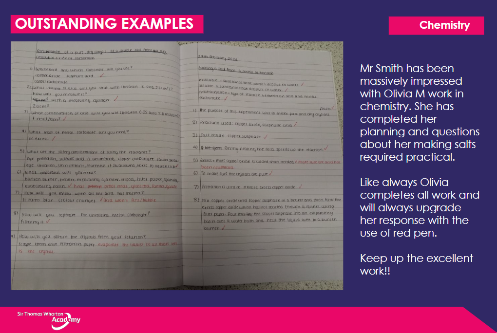 Staff encourage investment in the subject through an appreciation of the relevance and vast impact science has on the community and wider world, to enrich lives and inspire the next generation and their contributions to a STEM based society.